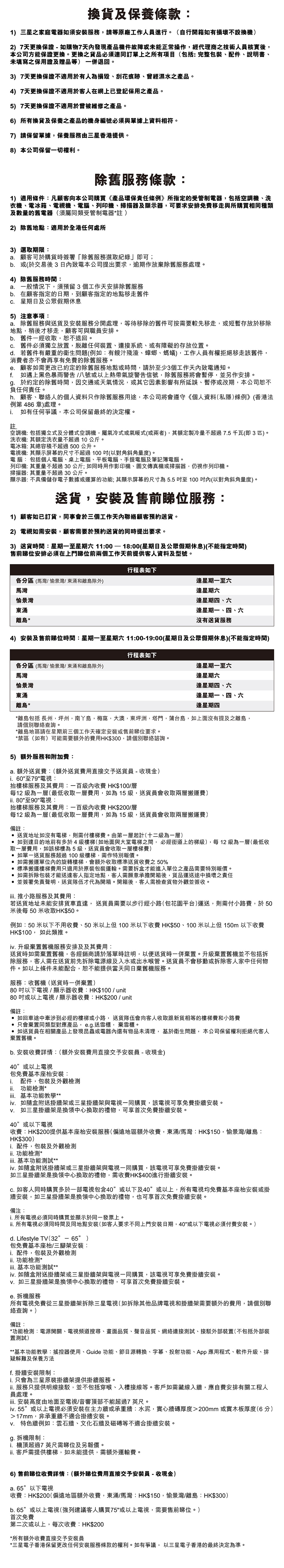 Samsung 65" 或以上電視 送貨、安裝及保養條款