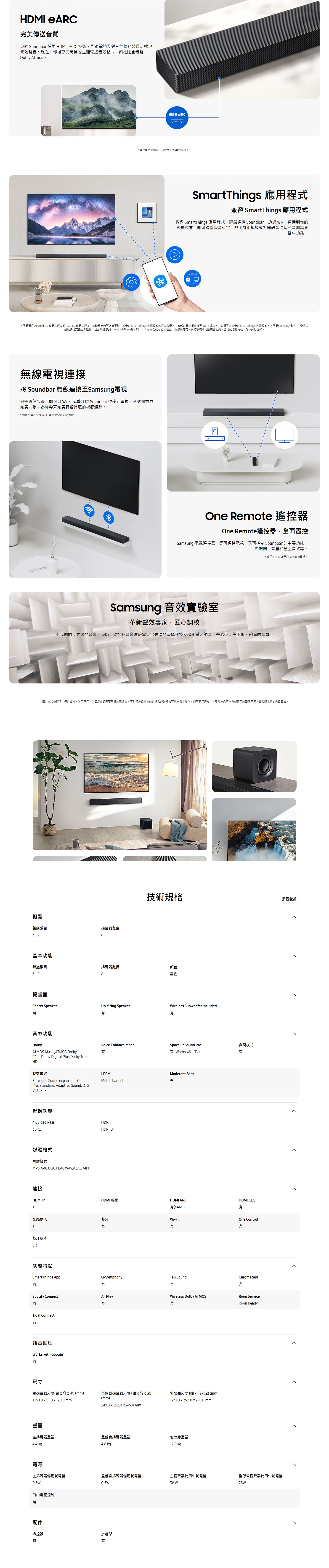 Samsung - Q-series Soundbar HW-QS700F 3.1.2 ch 配重低音喇叭 (2025) HW-QS700F/ZK 黑色
